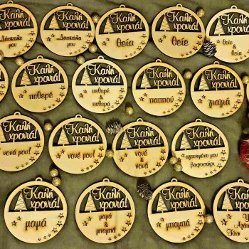 Ξύλινη στρόγγυλη εικόνα που απεικονίζει την Παναγία με το Θείο βρέφος. Κομμένη με τελειότητα μέσω της τεχνολογίας cnc laser και στολισμένη με εντυπωσι..